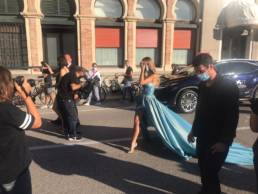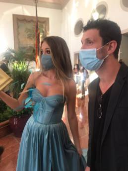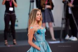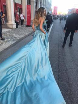 I colori del mar Ionio, scelti come onde per rivestire nelle sue nuance le delicate ed eteree forme dell’abito di Alta Moda che Mario Costantino Triolo ha pensato e realizzato per Erika Aurora.